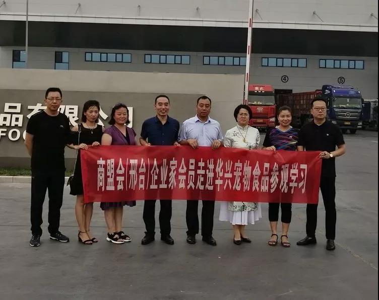 8月1日下午,商盟會(邢臺)企業家會員們來到了華興寵物食品有限公司參觀交流,華興總經理冀葉軍熱情接待并陪同參觀。